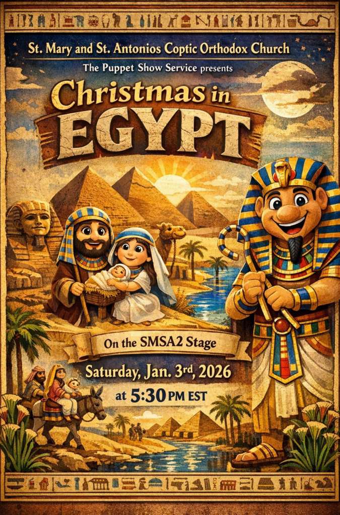 Join us for a joyful and meaningful puppet show , through music, colorful puppets, and inspiring stories, children will discover how God protected His Son and blessed Egypt forever.